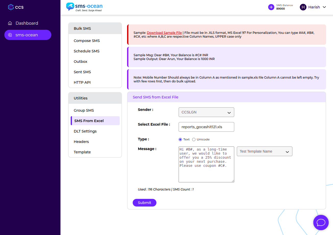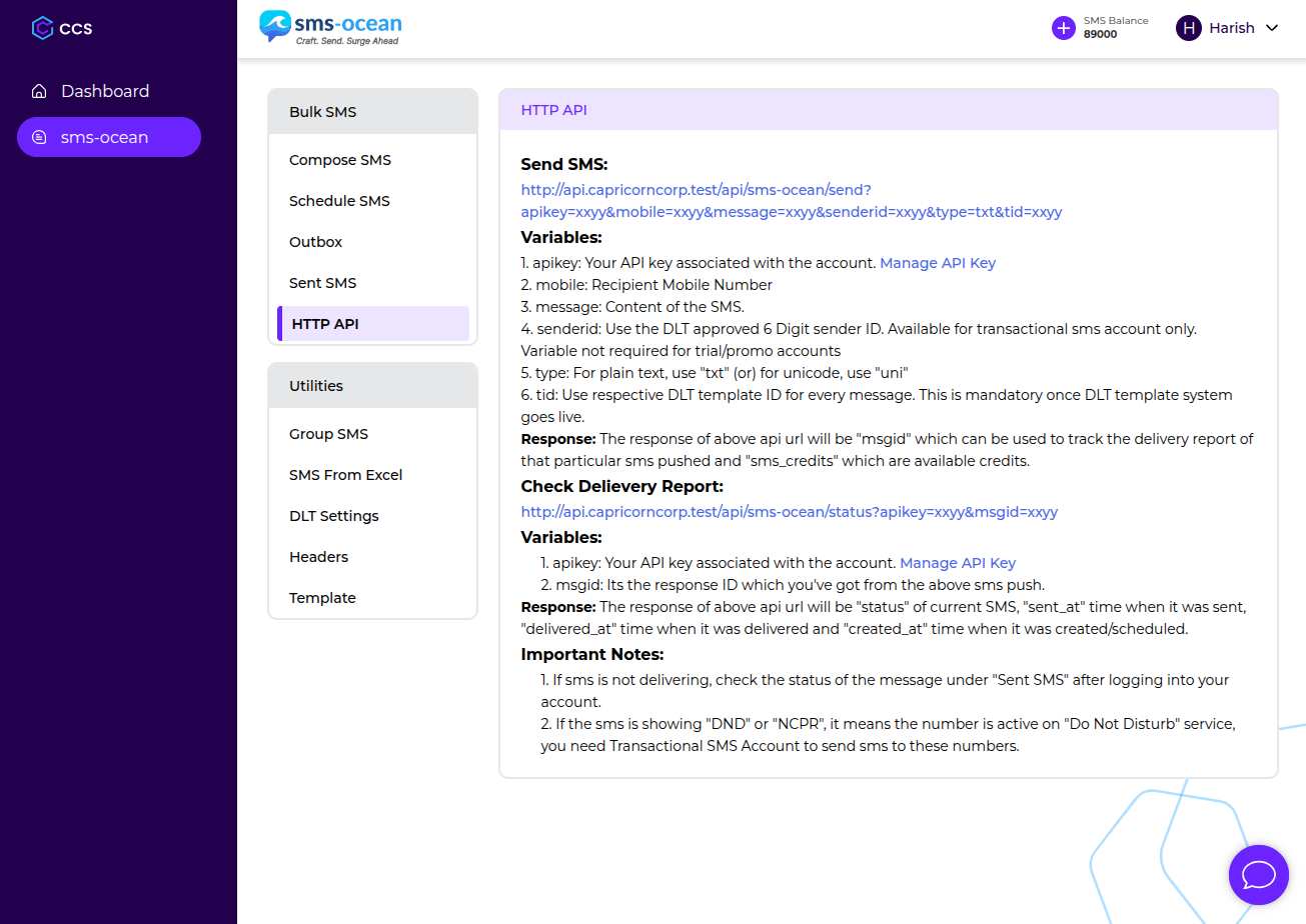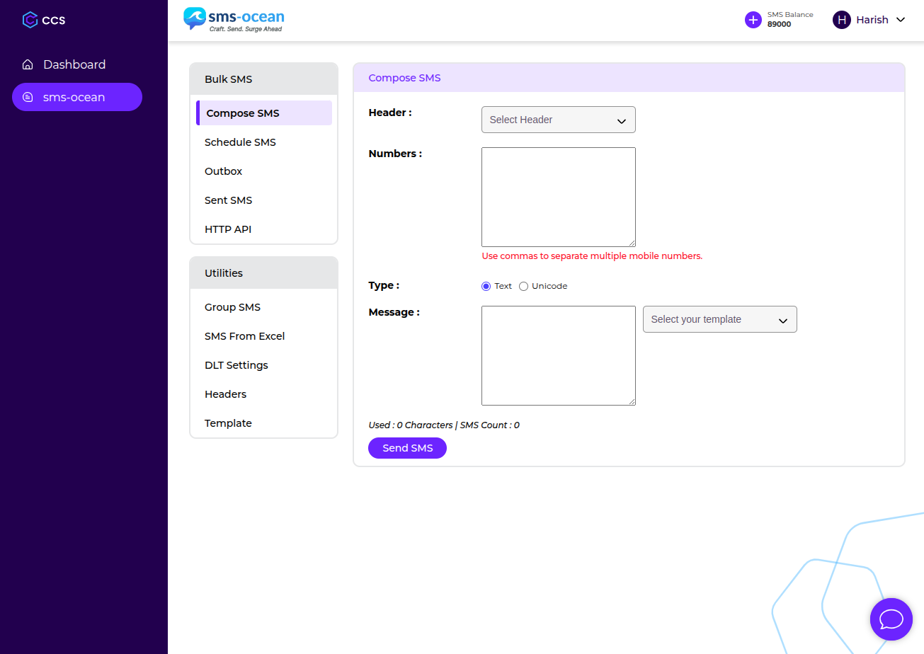 Create your account on sms-ocean using your email and business details. Access your dashboard instantly and start exploring the platform.